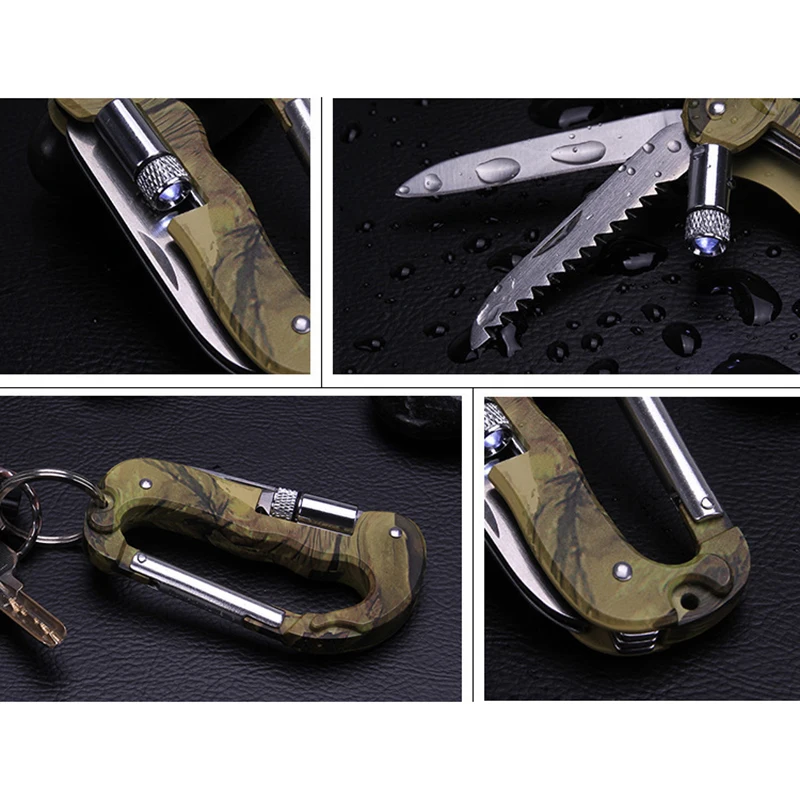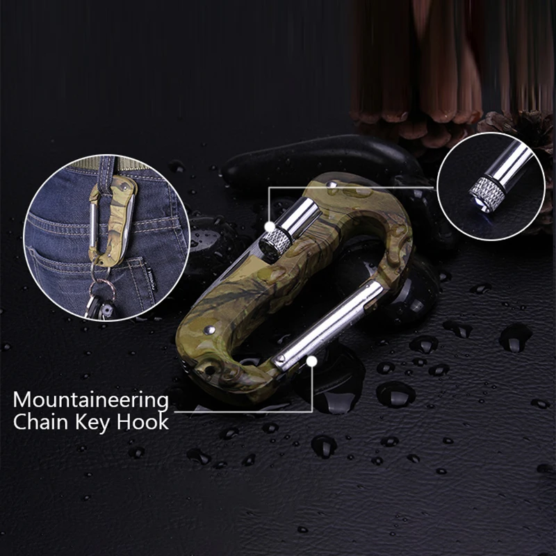 Outdoor Climbing Carabiner With LED Light - Aluminum Alloy D-Shaped Spring Lock Hook, Multi-Functional Combo Tool With Knife