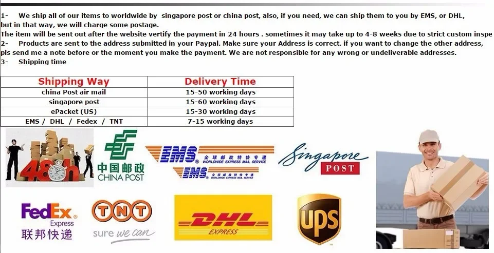 ?If you do not receive the goods within 50 days after payment, please contact us. We will track the goods and get back to you as soon as possible. Our goal is to make customers satisfied!